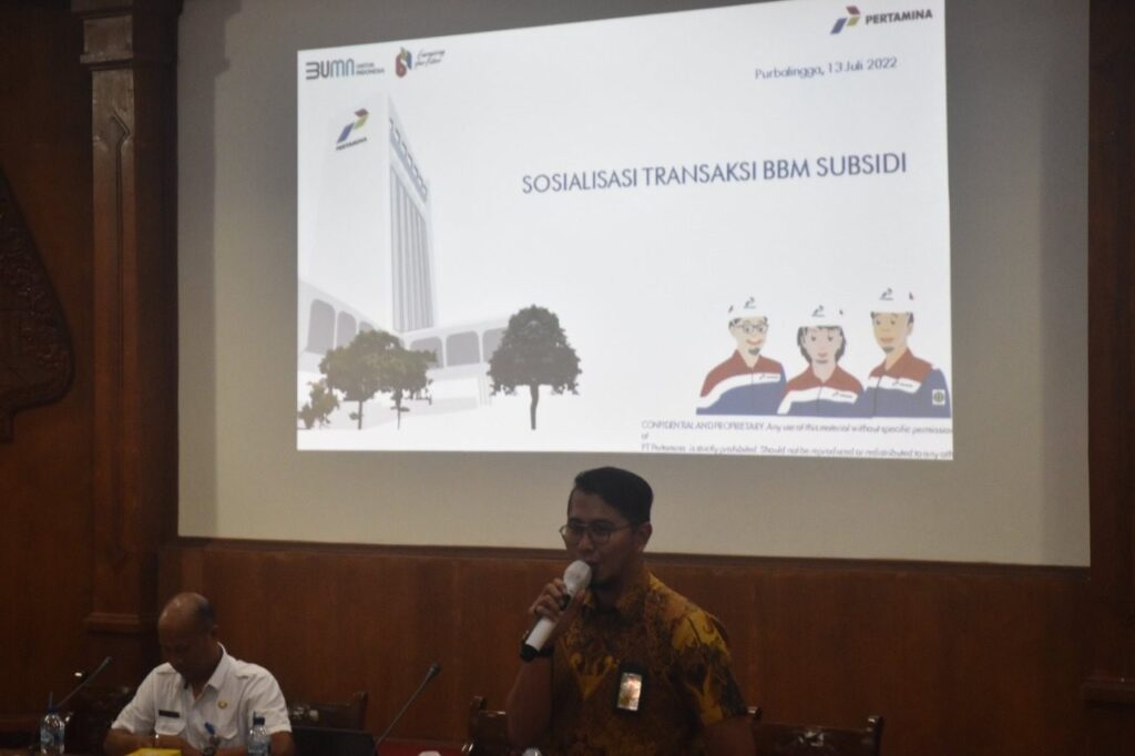Kepala Dinperindag kabupaten Purbalingga, Johan Arifin menyampaikan kegiatan sosialisasi kebijakan distribusi BBM bersubsidi ini untuk meningkatkan pemahaman masyarakat terkait pendaftaran subsidi tepat My Pertamina.