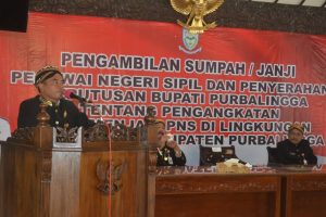 Kepala Badan Kepegawaian Pendidikan dan Pelatihan Daerah (BKPPD) Kabupaten Purbalingga, Heriyanto SPd MSi memaparkan pengangkatan bidan CPNS menjadi PNS kali ini merupakan hasil penjaringan dari formasi CPNS tahun 2017 lalu yang telah selesai menjalani masa percobaan. Kegiatan kali ini juga merupakan pelantikan untuk pertama kalinya yang mengacu pada Peraturan Pemerintah (PP) No 5 tahun 2017 tentan menejemen Aparatur Sipil Negara (ASN).