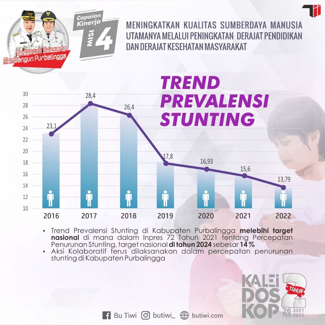 Pencapaian ini, kata Bupati Tiwi, berkat aksi kolaboratif yang terus dilaksanakan dalam percepatan penurunan stunting di Kabupaten Purbalingga.