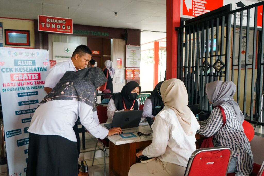 “Ini hadiah ulang tahun dari pemerintah bagi masyarakat, berupa pemeriksaan kesehatan gratis. Tidak perlu mahal-mahal cek kesehatan ke laboratorium swasta, cukup datang setahun sekali di hari ulang tahun ke puskesmas,” ujarnya.