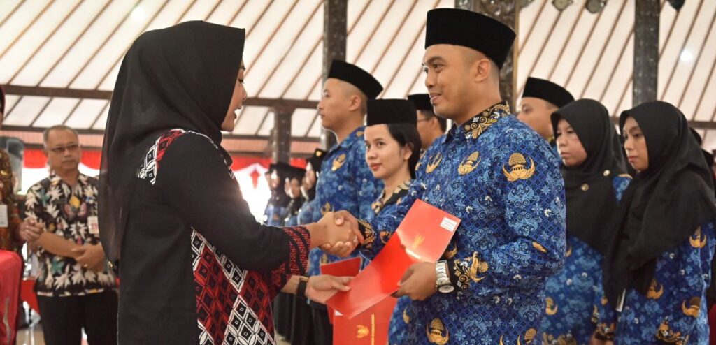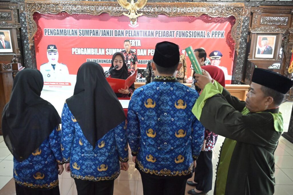 PURBALINGGA – Bupati Purbalingga Dyah Hayuning Pratiwi melantik dan mengambil sumpah sebanyak 229 Aparatur Sipil Negara (ASN) di lingkungan Pemerintah Kabupaten Purbalingga. Terdiri dari 219 PNS formasi 2021, tiga orang lulusan Institut Pemerintahan Dalam Negeri (IPDN), lima orang Pegawai Pemerintah dengan Perjanjian Kerja (PPPK), dan dua orang pejabat fungsional.