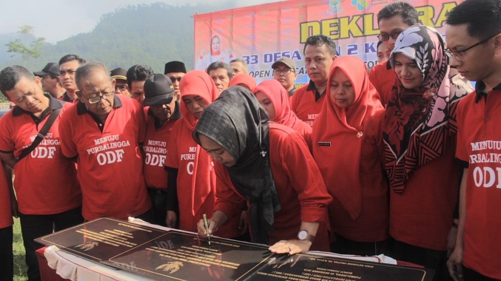 “Saya minta kegiatan ini dapat memicu desa/kelurahan lain untuk segera ODF. Ini menjadi pekerjaan rumah Dinas Kesehatan agar bagaimana seluruh desa di kabupaten Purbalingga segera mendeklarasikan sekaligus mengimplementasikan ODF di desanya masing-masing,” katanya.