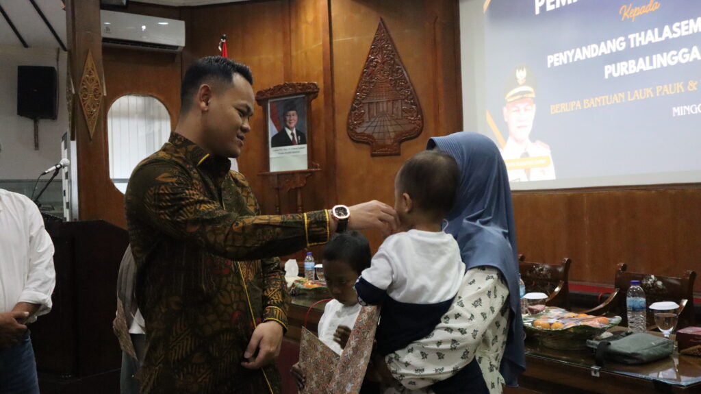 PURBALINGGA – Bupati Purbalingga Fahmi Muhammad Hanif berikan bantuan sosial/hibah kepada penyandang thalasemia mayor berupa lauk pauk dan transportasi melalui Perhimpunan Orangtua Penderita Thalasemia Indonesia (POPTI). Ia berkomitmen akan terus mengalokasikan sebagian APBD untuk membantu para penyintas thalasemia.