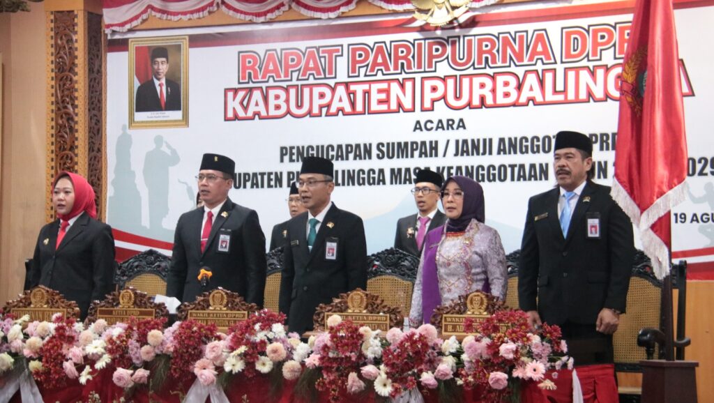 PURBALINGGA INFO – Sebanyak 50 anggota Dewan Perwakilan Rakyat Daerah (DPRD) Kabupaten Purbalingga terpilih untuk masa keanggotaan 2024-2029 resmi dilantik pada Senin (19/8/24). Pelantikan ini berdasarkan Keputusan Gubernur Jawa Tengah Nomor 170/124 Tahun 2024 tentang Peresmian Pemberhentian dan Peresmian Pengangkatan Anggota DPRD Kabupaten Purbalingga.