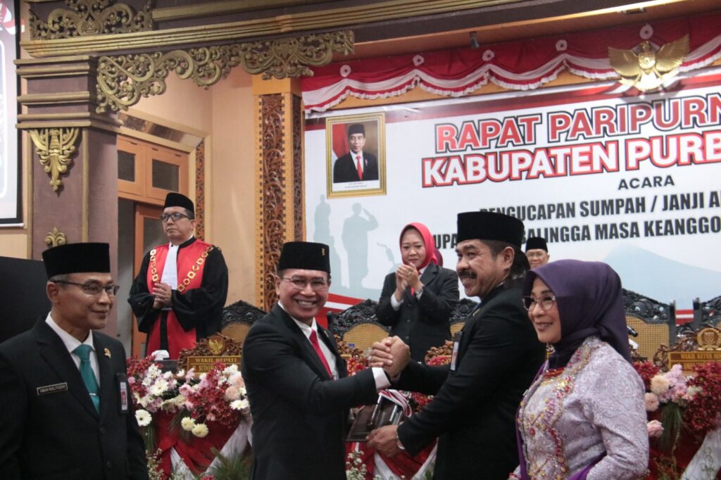 Pelantikan dan pengambilan sumpah jabatan yang dipimpin oleh Ketua Pengadilan Negeri Purbalingga, Eko Julianto, berlangsung di Ruang Rapat Paripurna DPRD Kabupaten Purbalingga. Turut hadir dalam acara tersebut Bupati Purbalingga Dyah Hayuning Pratiwi, jajaran Forkopimda, Sekretaris Daerah Kabupaten Purbalingga Herni Sulasti, serta sejumlah pejabat dan kepala Organisasi Perangkat Daerah (OPD) Kabupaten Purbalingga.