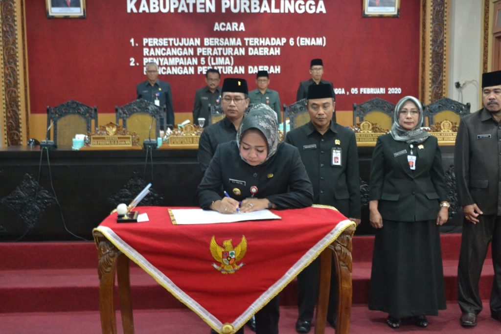 “Setelah Raperda mendapat persetujuan bersama antara pemerintah daerah dan DPRD, sebelum ditetapkan harus disampaikan kepada gubernur untuk dievaluasi,” kata Bupati Purbalingga Dyah Hayuning Pratiwi SE BEcon MM.