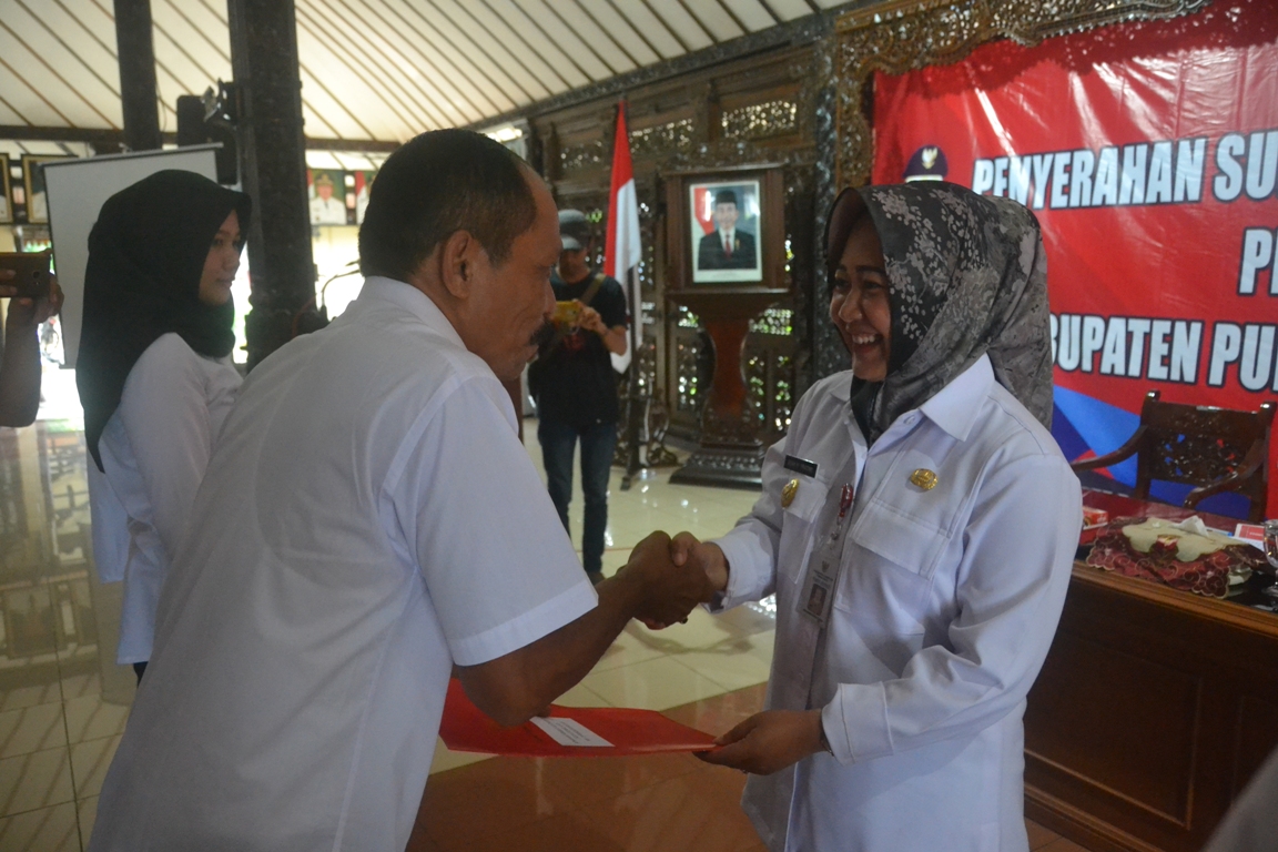 PURBALINGGA – Sebanyak 621 Pegawai Negeri Sipil (PNS) di lingkungan pemerintah Kabupaten Purbalingga mendapatkan Surat Keputusan (SK) Kenaikan Pangkat, Rabu (10/4) di Pendopo Dipokusumo. Kepala Badan Kepegawaian Pendidikan dan Pelatihan daerah (BKPPD) Purbalingga Heriyanto SPd MSi mengatakan kenaikan pangkat ini diberikan kepada seorang PNS yang telah memenuhi syarat-syarat dan ketentuan sesuai dengan peraturan perundang-undangan.