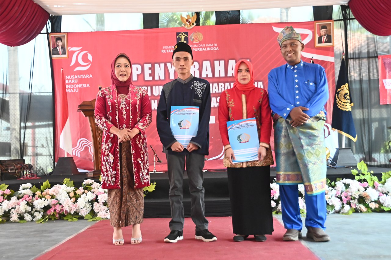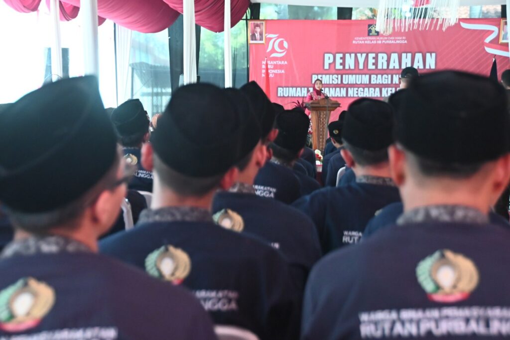 PURBALINGGA – Sebanyak 70 warga binaan di Rumah Tahanan Negara (Rutan) Kelas II B Purbalingga mendapatkan Remisi Umum (RU) atau pengurangan masa hukuman pada momentum Hari Ulang Tahun (HUT) Ke-79 Kemerdekaan RI. SK remisi secara simbolis diserahkan langsung oleh Bupati Purbalingga, Sabtu (17/8/2024) di Halaman Rutan Kelas II B Purbalingga.
