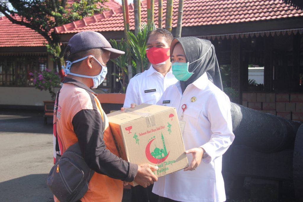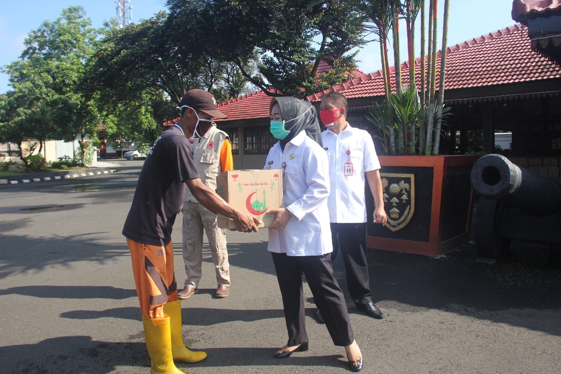 Kepala Dinas Lingkungan Hidup Priyo Satmoko menuturkan, sesuai agenda DLH hari ini dibagikan bingkisan lebaran yang sudah masuk dalam anggaran pemerintah melalui DLH. Bingkisan lebaran khusus bagi mereka yang masih berstatus Tenaga Harian Lepas (THL). Bagaimanapun para THL kebersihan juga terdampak adanya pandemi covid, disamping untuk meringankan beban mereka menghadapi lebaran besok. Para Tenaga Harian Lepas yang menangani masalah kebersihan baik tenaga sapuan, tenaga angkutan dan tenaga pengelola TPA berjumlah 150 orang.