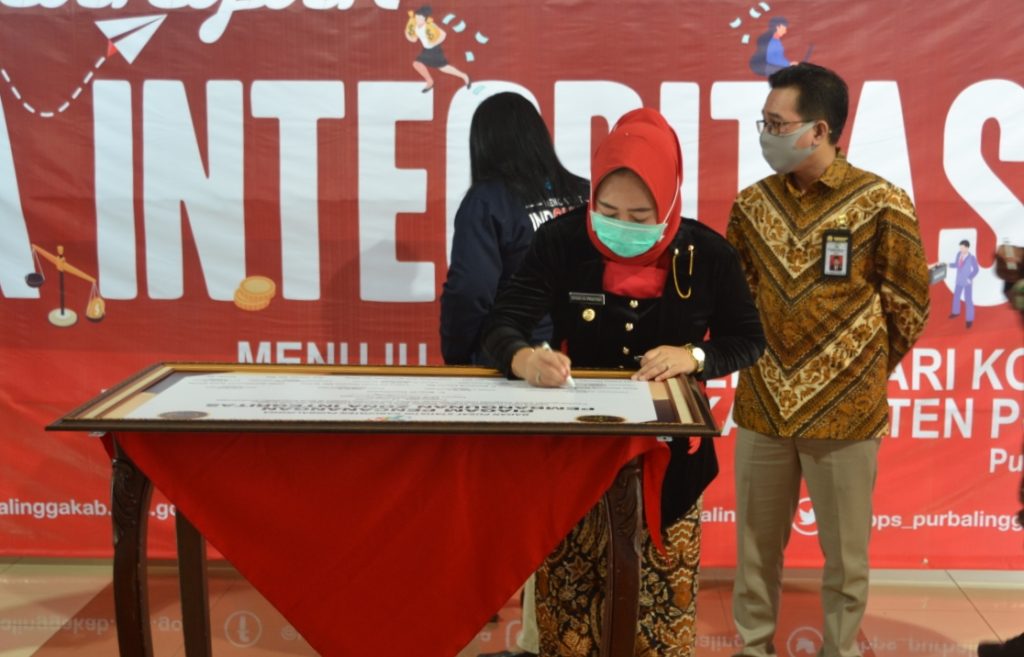 Bupati Purbalingga Dyah Hayuning Pratiwi SE BEcon MM berharap Pencanangan Pembangunan Zona Integritas ini tidak hanya mampu mewujudkan wilayah bebas korupsi tapi juga wilayah birokrasi bersih melayani, mampu meningkatkan pelayanan prima kepada masyarakat.