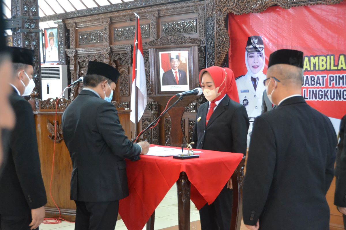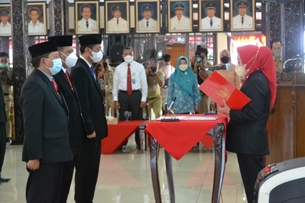 PURBALINGGA – Kekosongan jabatan 8 kepala Organisasi Perangkat Daerah (OPD) Pemkab Purbalingga akhirnya lengkap terisi setelah Bupati melantik dan mengambil sumpah Pejabat Pimpinan Tinggi (JPT) Pratama dan Administrator, Senin (13/12). Pengisian JPT Pratama ini dilakukan melalui mekanisme seleksi terbuka, uji kompetensi, wawancara Tim Pansel. dan telah mendapatkan persetujuan dari KASN.
