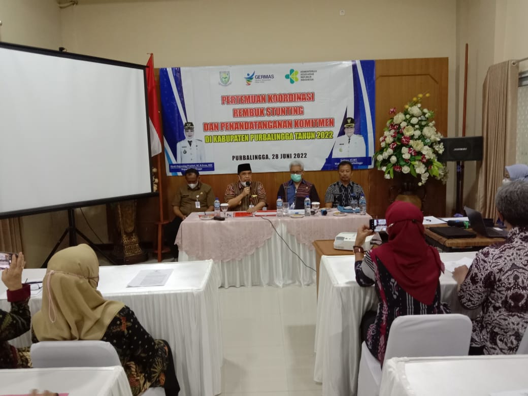 PURBALINGGA INFO- Angka prevalensi stunting di Kabupaten Purbalingga terus menurun dari tahun ke tahun. Hal tersebut disampaikan Kepala Bappelitbangda Purbalingga, Suroto selaku wakil ketua Tim Percepatan Penurunan Stunting Kabupaten Purbalingga Tahun 2022, Selasa (28/6/2022) di Tien Catering Jln. Ketuhu Wirasana pada acara Pertemuan Koordinasi Rembuk Stunting dan Penandatanganan Komitmen cegah stunting.