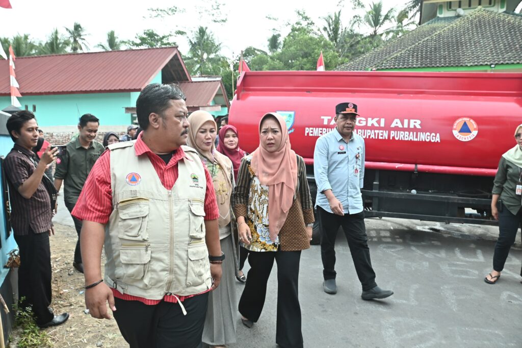 PURBALINGGA – Bupati Purbalingga Dyah Hayuning Pratiwi bersama Forkopimcam Karanganyar menyalurkan air bersih secara simbolis kepada warga Desa Kaliori, Kecamatan Karanganyar. Hal ini mengingat sumber air yang dimiliki masyarakat sudah tidak lagi mencukupi kebutuhan saat musim kemarau ini.