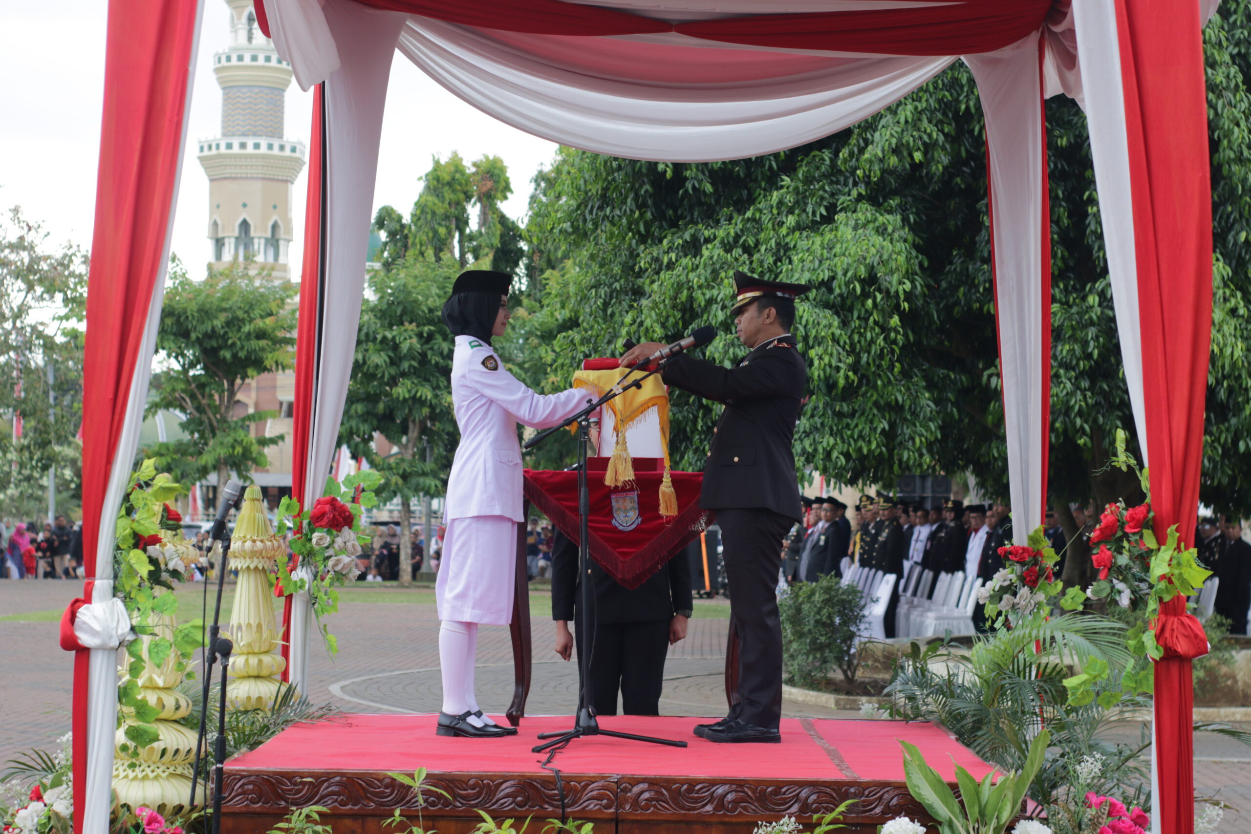 PURBALINGGA, INFO – Pelaksanaan Upacara Penurunan Bendera dan Aubade yang berlangsung di Alun-alun Kabupaten Purbalingga berjalan lancar dan khidmat. Bupati Purbalingga, Dyah Hayuning Pratiwi beserta Sekretaris Daerah, kepala OPD, dan Forkompimda hadir dalam acara yang berlangsung, Kamis (17/8) sore.