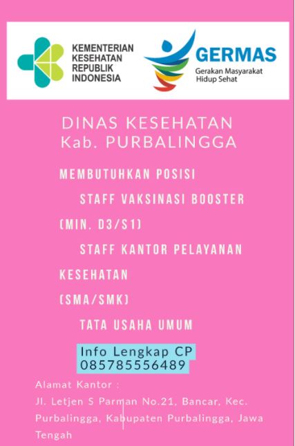 PURBALINGGA INFO, Akhir-akhir ini ada pesan berantai melalui Whastapp yang mencatut nama Dinas Kesehatan (Dinkes) Purbalingga terkait rekruitmen staf vaksinasi booster, dan staf kantor pelayanan dengan mencantumkan contact person (CP) 085785556489.