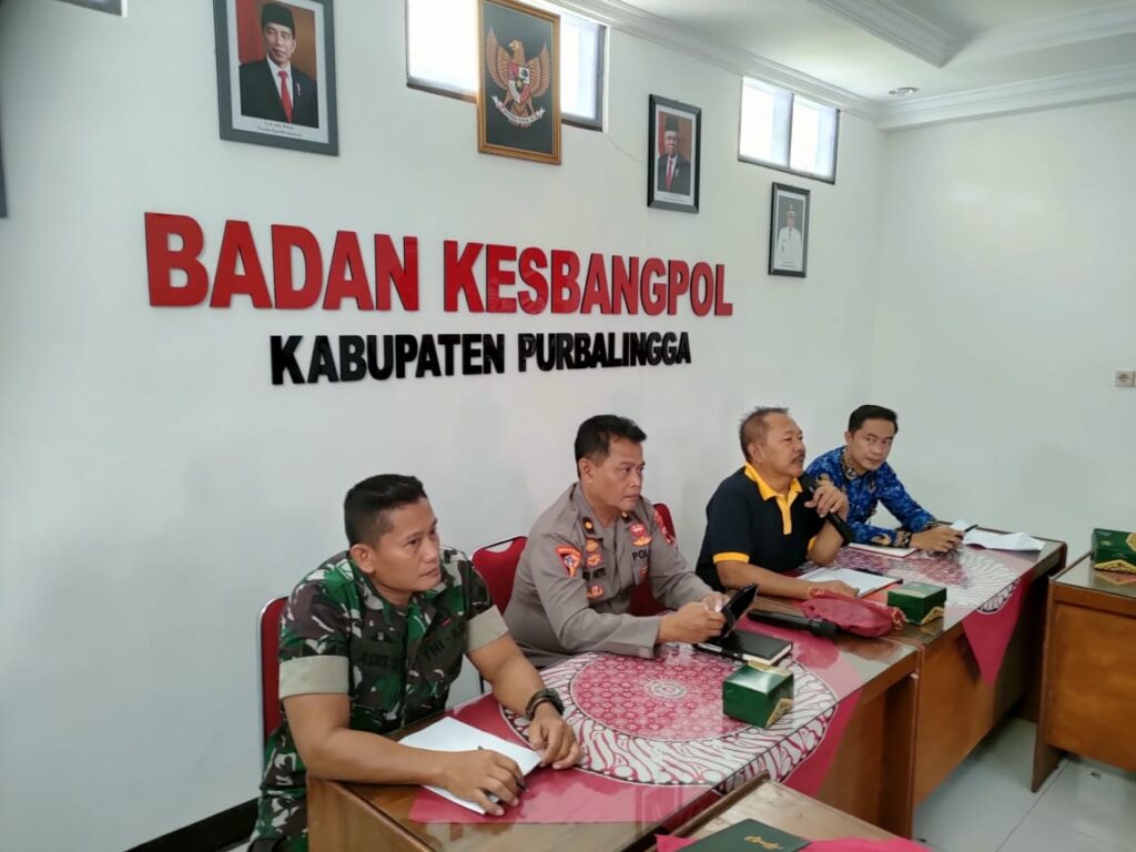 Rapat berlangsung di ruang rapat Pancasila Bakesbangpol Purbalingga pada Jumat (17/5/24), dipimpin oleh Kepala Bakesbangpol Pandi, S.Sos, dan dihadiri oleh para pimpinan atau perwakilan dari unsur TNI dan Polri serta perwakilan dari OPD terkait.