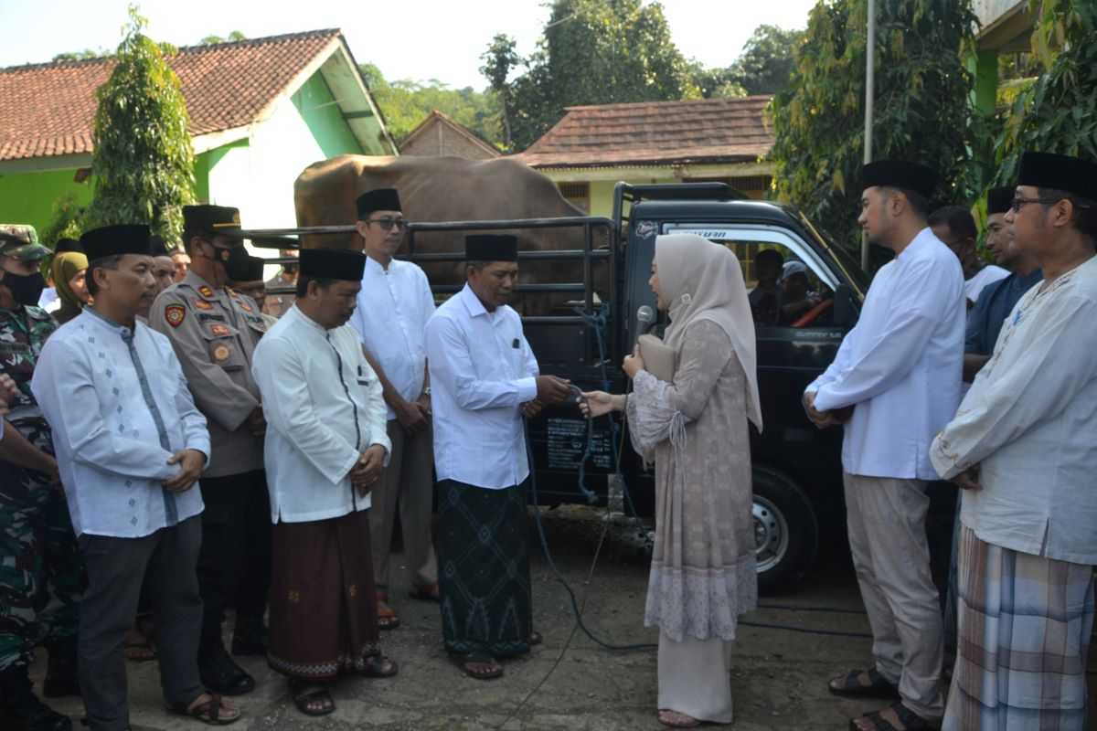 PURBALINGGA – Pemkab Purbalingga menyerahkan 18 hewan kurban (sapi) ke 18 desa saat momentum Hari Raya Idul Adha 1443, Minggu (10/7). Penyerahan secara simbolis dilaksanakan oleh Bupati Purbalingga Dyah Hayuning Pratiwi SE BEcon MM dan Ketua DPRD HR Bambang Irawan SH.