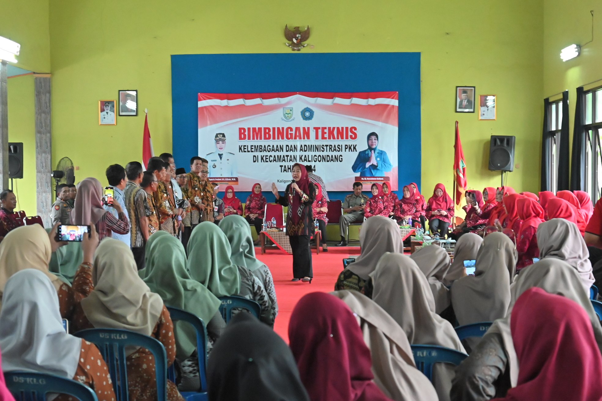 Gelaran Bimbingan Teknis (Bimtek) Kelembagaan dan Administrasi Pemberdayaan Kesejahteraan Keluarga (PKK) Kecamatan Kaligondang berlangsung meriah. Bupati Tiwi yang hadir langsung disambut dengan yel-yel dari anggota PKK se Kecamatan Kaligondang. Sebelum acara inti, bupati memberikan kuis yang dikhususkan kepada para kepala desa (kades) di Kaligondang.