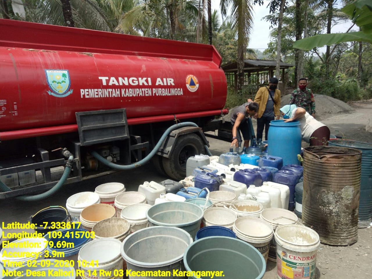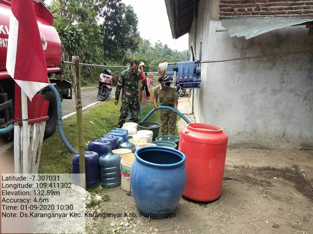 Soni menuturkan Dusun 1 Desa Karanganyar sudah terdistribusi sebanyak 15 ribu liter air atau 3 tangki. Distribusi air bersih dilanjutkan pada hari ini (2/9) di Dusun IV Desa Karanganyar sebanyak 4 tangki dan Desa Kaliori kurang lebih 6 tangki.