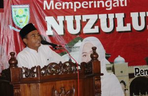 Bupati Purbalingga H Tasdi, SH. MM. dalam sambutannya mengajak melalui peringatan nuzulul Qur’an dijadikan momentum mengimplementasikan Al Qur’an dalam kehidupan nyata berbangsa dan bernegara, demi keselamatan baik di dunia maupun di akhirat. Bertepatan dengan peringatan hari lahir Pancasila yang diperingati tiap tanggal 1 Juni, maka Bupati mengajak untuk meningkatkan apresiasi Al Qur’an sebagai pedoman dalam kehidupan begitu juga dengan Pancasila yang merupakan falsafah bangsa dan Negara harus tetap dipertahankan.
