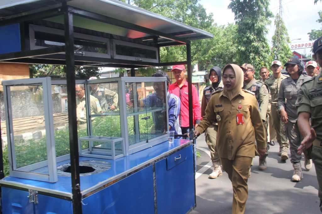 Tiwi sempat membantu mendorong gerobak PKL dalam prosesi pemindahan dari alun-alun Purbalingga menuju ke Purbalingga Food Center di komplek GOR Goentoer Daryono.