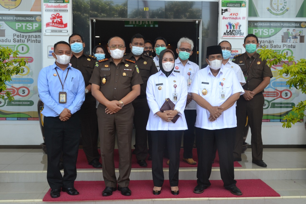 PURBALINGGA – Bupati Purbalingga Dyah Hayuning Pratiwi SE BEcon MM bersama Wakil Bupati Sudono ST MT didampingi sejumlah pejabat Pemkab Purbalingga berkunjung ke kantor Kejaksaan Negeri (Kejari) Purbalingga, Rabu (21/4/2021). Pada kesempatan ini Bupati atas nama Pemkab Purbalingga menyampaikan penghargaan sebagai apresiasi atas kinerja Kejari Purbalingga yang telah bermitra dengan baik dan memberikan manfaat.“Kami memberikan apresiasi yang tinggi kepada pak Kajari dan jajaran karena kinerja dan pendampingan terhadap Pemerintah Daerah, memberikan manfaat yang luar biasa. Sehingga aset-aset pemerintah bisa kembali dan tindak lanjut bisa diselesaikan 100% dan tidak ada kerugian negara,” kata Bupati Tiwi.