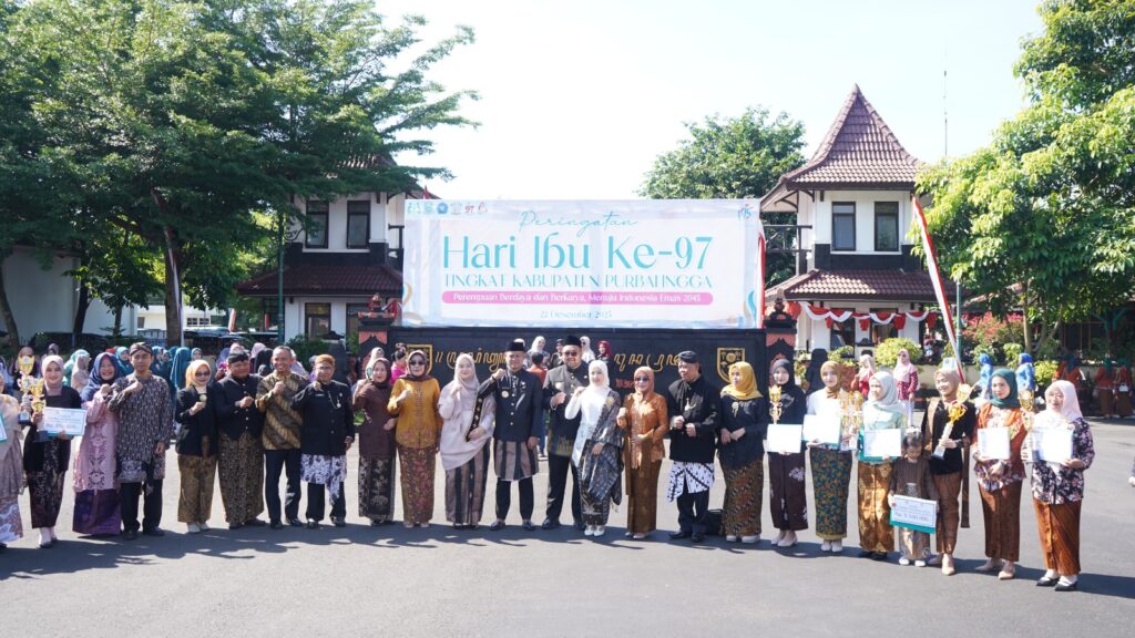 PURBALINGGA INFO – Pemerintah Kabupaten Purbalingga menggelar upacara bendera dalam rangka Peringatan Hari Ibu ke-97 Tahun 2025 di halaman Pendopo Dipokusumo, Senin (22/12/25). Upacara tersebut dipimpin oleh Bupati Purbalingga Fahmi Muhammad Hanif selaku inspektur upacara.
