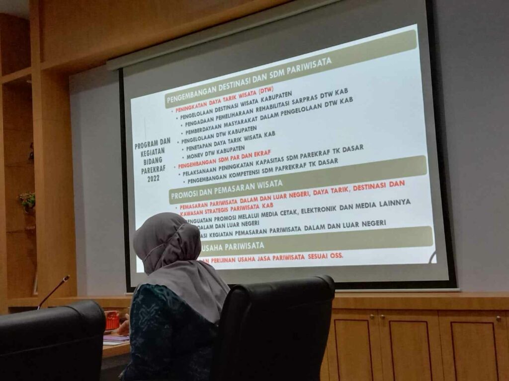 PURBALINGGA INFO- Promosi segala bidang menuntut sebuah inovasi yang nyata bagi pengembangan pariwisata di Purbalingga. Hal tersebut disampaikan Bupati Purbalingga Dyah Hayuning Pratiwi (Tiwi) saat acara paparan evaluasi tahun anggaran 2021 dan rencana 2022 untuk Dinas Pemuda Olahraga dan Pariwisata (Dinporapar) Kabupaten Purbalingga, Selasa (15/2/2022) di ruang rapat Bupati.