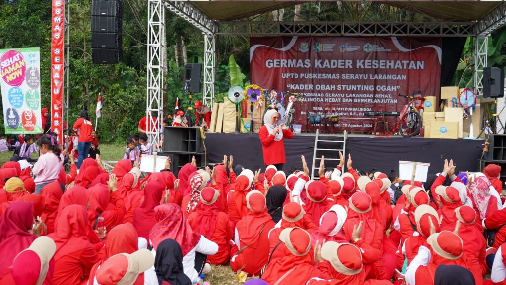 Apresiasi ini disampaikan oleh Bupati Tiwi dalam acara Gerakan Masyarakat Hidup Sehat (Germas) yang digelar oleh Puskesmas Serayu Larangan di Lapangan Desa Bojong, Kecamatan Mrebet, Senin (12/8/24). Pada kesempatan tersebut, Bupati Tiwi hadir bersama Ketua DPRD Purbalingga, HR Bambang Irawan.