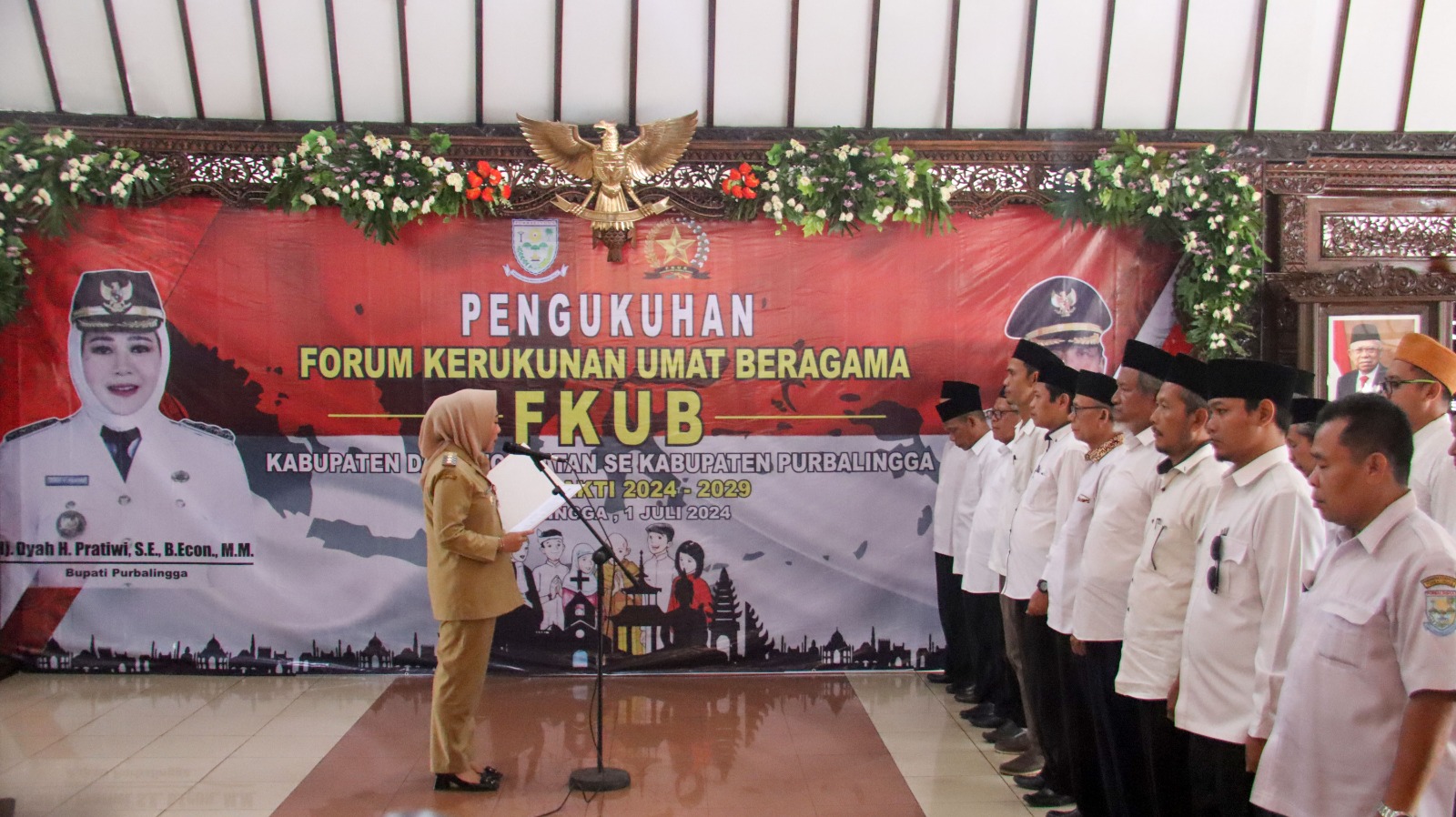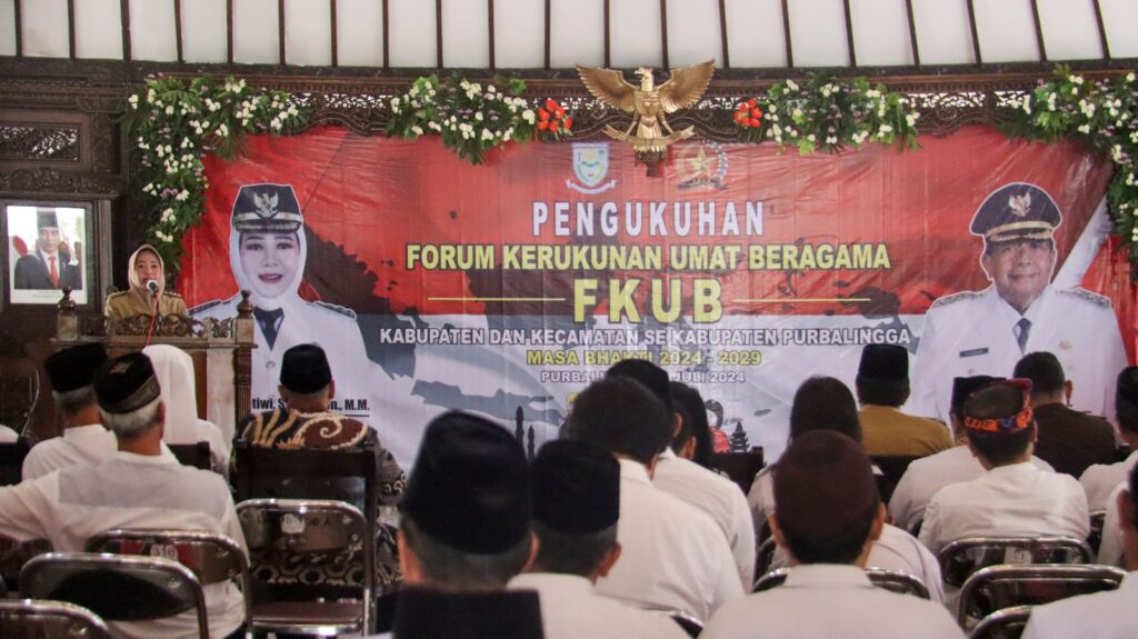 PURBALINGGA INFO – Menjelang pelaksanaan Pilkada serentak 2024, Bupati Purbalingga, Dyah Hayuning Pratiwi (Tiwi), mengimbau Forum Kerukunan Umat Beragama (FKUB) Kabupaten Purbalingga untuk berperan aktif dalam menjaga kondusifitas daerah. Hal ini disampaikan Bupati Tiwi dalam sambutannya pada acara pengukuhan Pengurus FKUB Kabupaten Purbalingga dan Pengukuhan Pengurus FKUB Tingkat Kecamatan, Senin (1/7/24).
