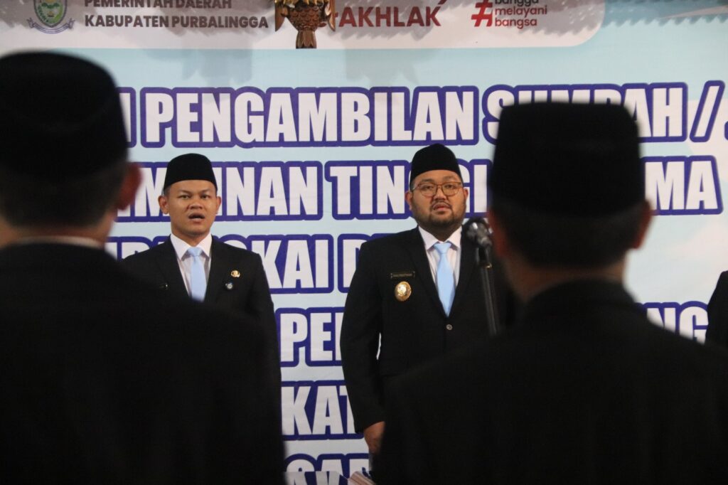 PURBALINGGA INFO – Bupati Purbalingga Fahmi Muhammad Hanif melantik enam Pejabat Pimpinan Tinggi Pratama di lingkungan Pemerintah Kabupaten Purbalingga. Pelantikan yang dirangkai dengan penyerahan Dokumen Pelaksanaan Anggaran (DPA) SKPD Tahun 2026 tersebut digelar di Pendopo Dipokusumo, Purbalingga, Jumat (2/12/26).