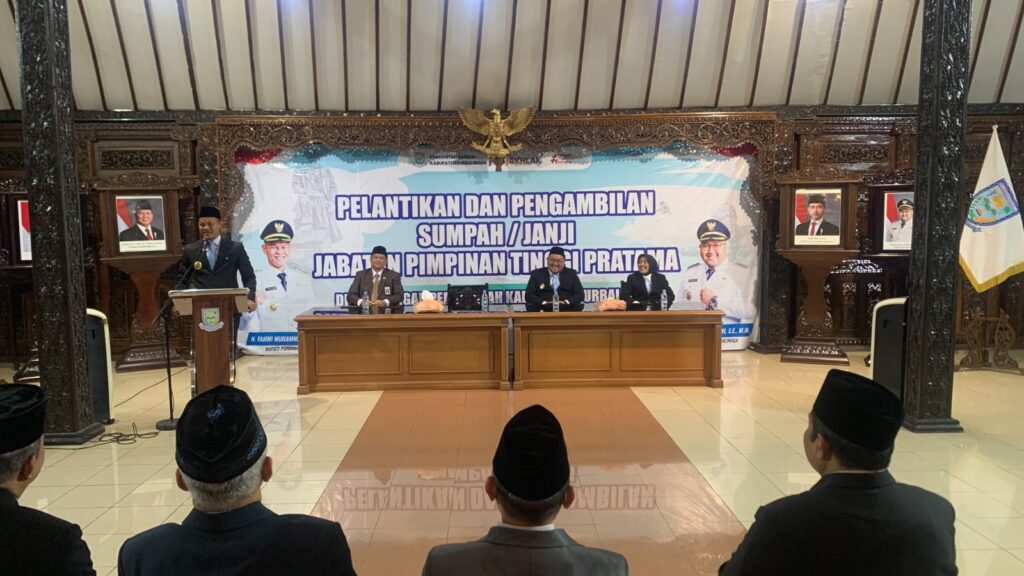 PURBALINGGA INFO – Bupati Purbalingga Fahmi Muhammad Hanif melantik lima Pejabat Pimpinan Tinggi Pratama di lingkungan Pemerintah Kabupaten Purbalingga. Pelantikan berlangsung di Pendopo Dipokusumo, Senin (12/1/26). Pelantikan juga dihadiri Wakil Bupati Dimas Prasetyahani, Wakil Ketua DPRD Aris Widiarso, serta Sekretaris Daerah Herni Sulasti.
