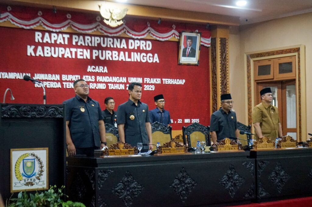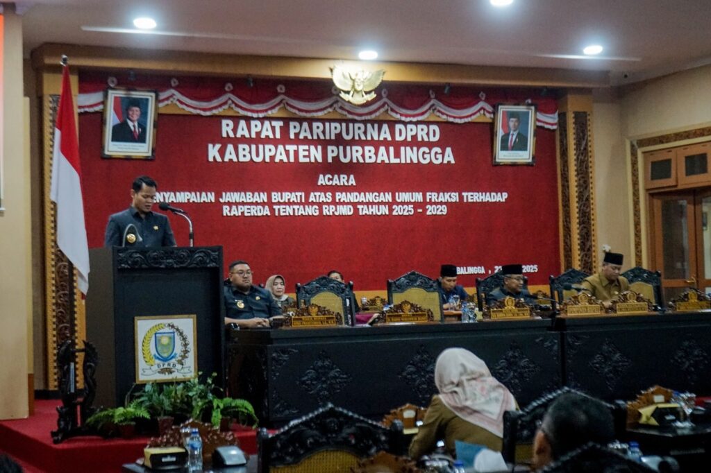 PURBALINGGA INFO – DPRD Kabupaten Purbalingga kembali menggelar rapat paripurna, Kamis (22/5/25), sebagai lanjutan dari agenda sebelumnya yaitu penyampaian pandangan umum fraksi-fraksi terhadap Raperda Rencana Pembangunan Jangka Menengah Daerah (RPJMD) Tahun 2025–2029. Agenda rapat kali ini adalah penyampaian jawaban Bupati atas pandangan umum tersebut.