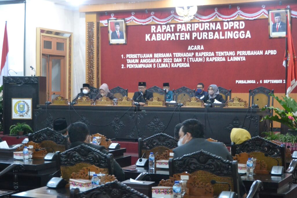 PURBALINGGA – Bupati Purbalingga menyampaikan 5 Rancangan Peraturan Daerah (Raperda) baru untuk segera dibahas bersama DPRD, dalam Rapat Paripurna DPRD Selasa (6/9) di Ruang Rapat DPRD. Lima Raperda tersebut diantaranya : Raperda tentang Pendidikan Karakter, Pancasila dan Wawasan Kebangsaan, Serta Anti Korupsi; Raperda tentang Perlindungan dan Pengelolaan Lingkungan Hidup; Raperda tentang Penyelenggaraan Perizinan Berusaha; Raperda tentang Bangunan Gedung; dan Raperda tentang Pencabutan Perda Nomor 14 Tahun 2013 Tentang Ketenagalistrikan.