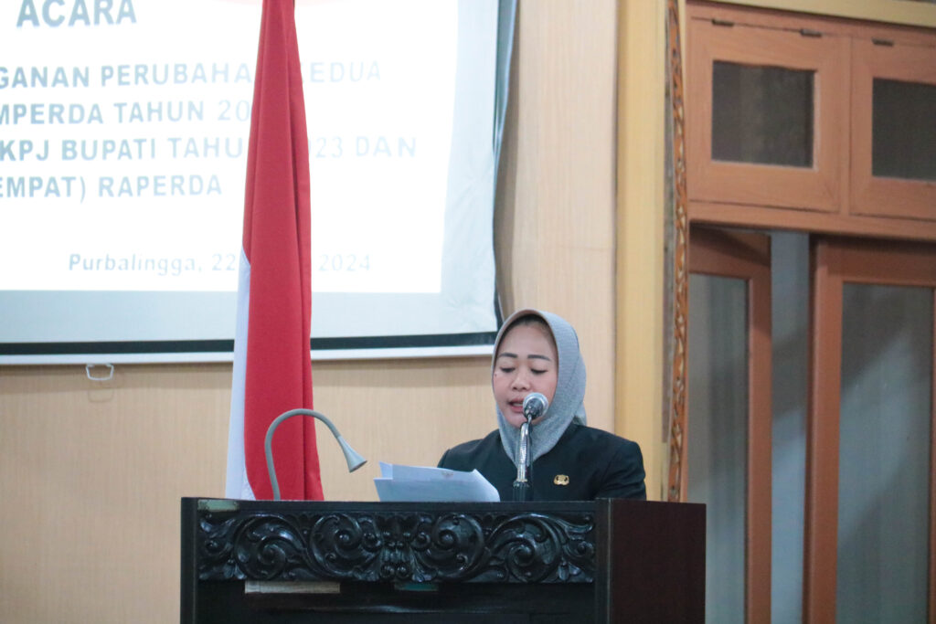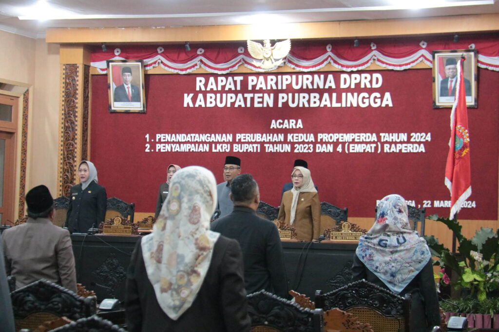 Hal tersebut disampaikan oleh Bupati Purbalingga, Dyah Hayuning Pratiwi ketika sambutan Rapat Paripurna DPRD Kabupaten Purbalingga, dengan agenda Penyampaian Laporan Keterangan Pertanggungjawaban (LKPJ) Bupati Purbalingga Tahun Anggaran 2023, di Kantor DPRD setempat, Jumat (22/3/2024).