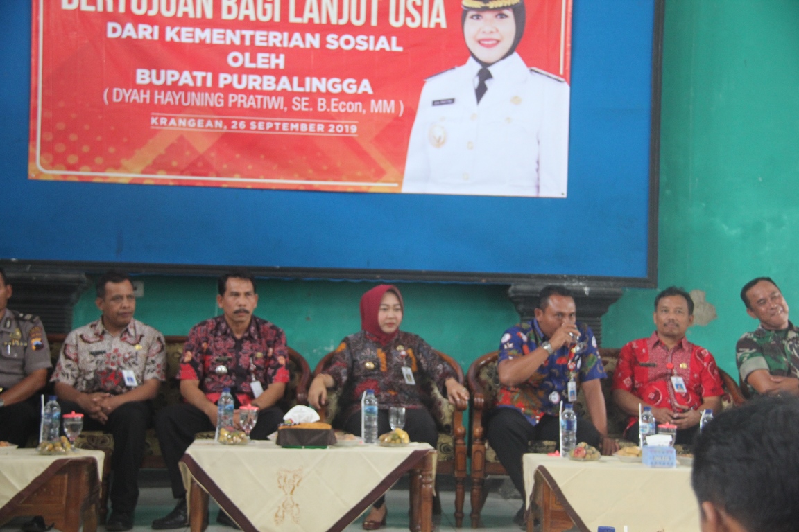 Dalam sambutannya Bupati Tiwi mengatakan, bantuan ini berasal dari Kementrian Sosial Republik Indonesia dimana setiap warga lanjut usia (lansia) mendapatkan bantuan Rp. 2,4 juta dalam satu tahun. sebenarnya Pemkab Purbalingga juga memiliki program yang merupakan bentuk perhatian pemerintah kabupaten terhadap para lansia. Program Pemerintah Kabupaten Purbalingga yang ditujukan kepada para lansia berupa program Rantang Berkah.