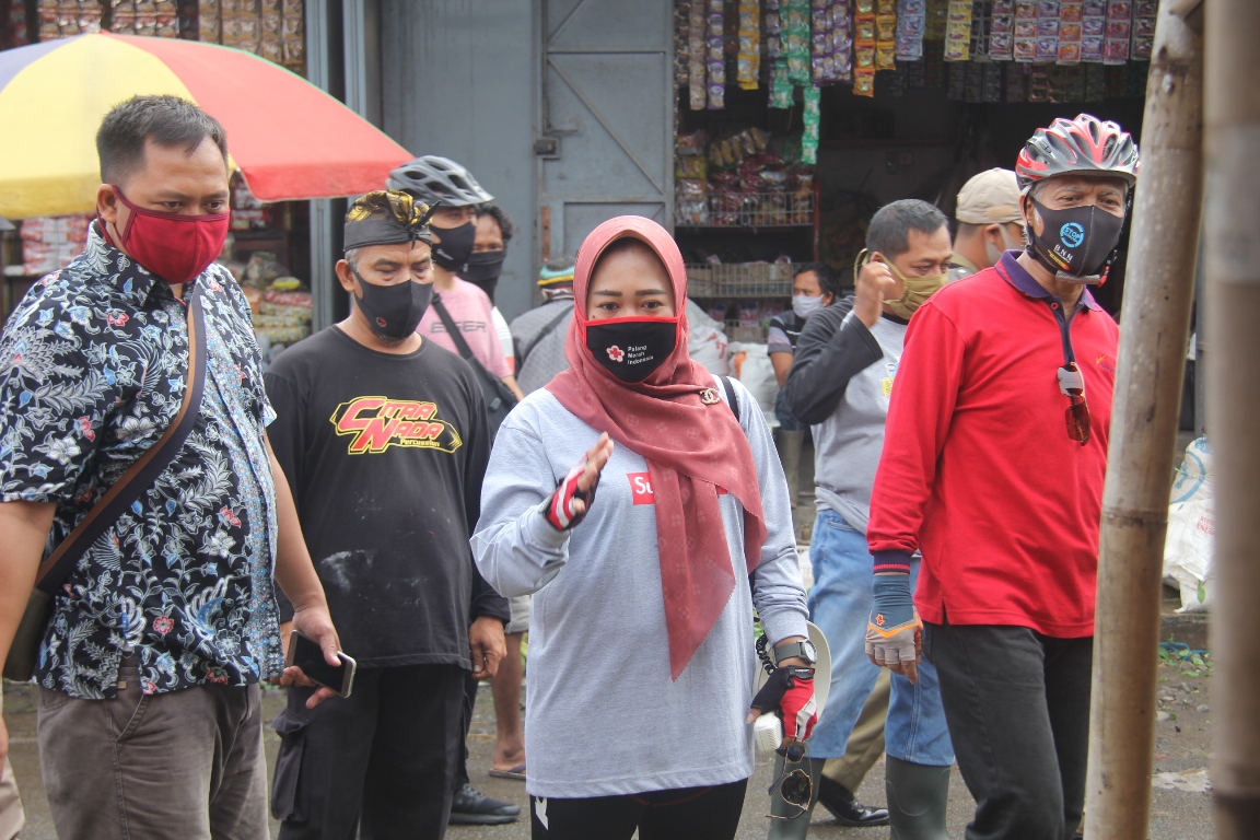 “Hari ini saya ngecek beberapa titik pasar yang kemarin hasil rapid test positif, kami sidak apakah protokol kesehatan betul betul sudah dijalankan.” kata bupati yang biasa disapa Tiwi.