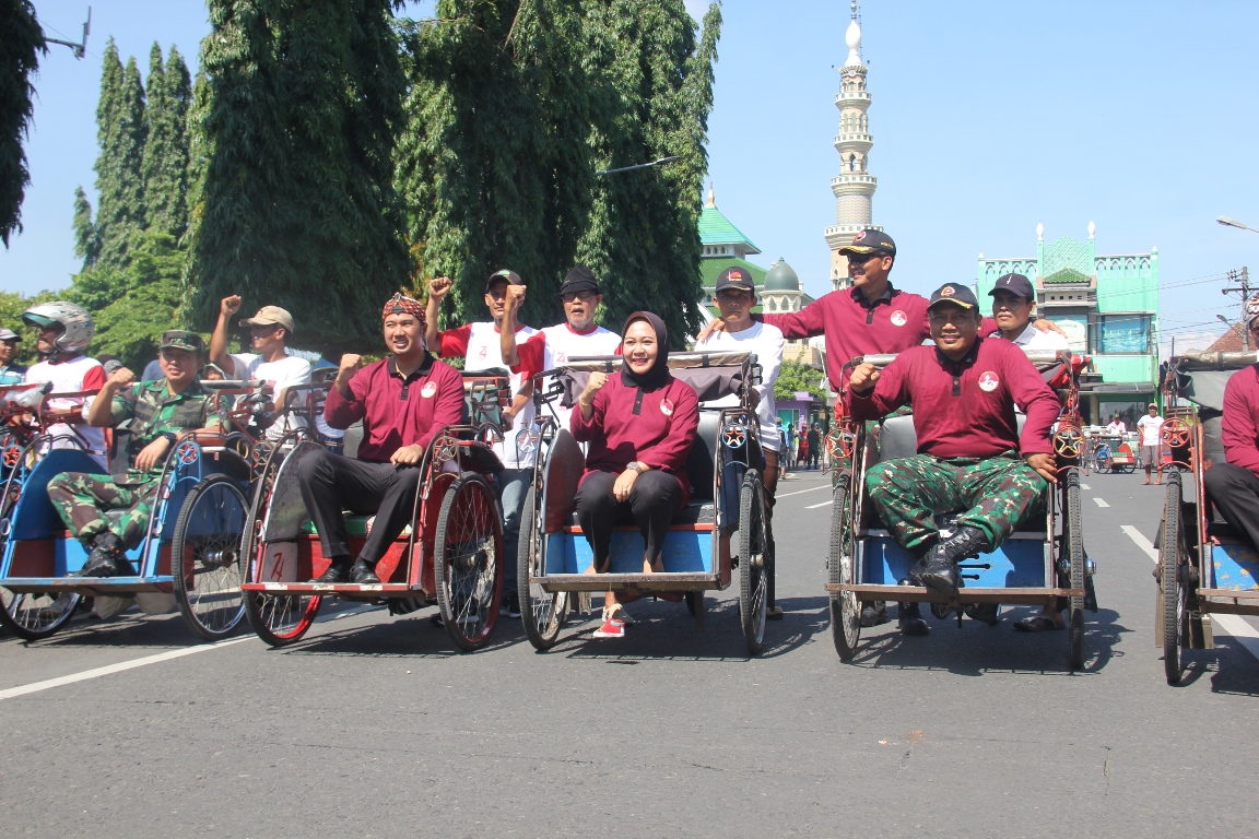 “Kalau tahun lalu abang-abang becak sudah mendapatkan bantuan roda nggih, tahun ini juga akan diberikan bantuan anggaran hibah untuk paguyuban becak Kabupaten Purbalingga. Sing penting abang-abang becak tetap sehat dan tetap semangat,” kata Tiwi.