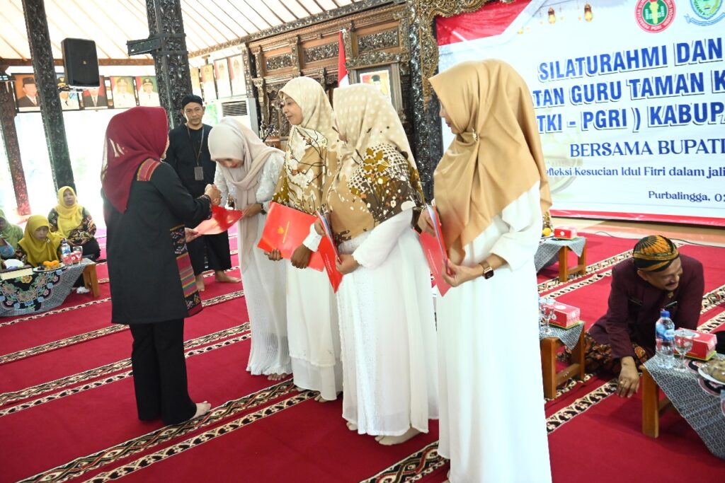 PURBALINGGA – Bupati Purbalingga Dyah Hayuning Pratiwi (Tiwi) menyampaikan guru TK mempunyai peran yang besar dalam membekali anak-anak yang berada pada golden age atau usia emas. Hal ini disampaikan Bupati Tiwi dalam sambutannya pada Silaturahmi dan Halal Bihalal dengan Keluarga Besar Ikatan Guru Taman Kanak-Kanak Indonesia (IGTKI) Kabupaten Purbalingga, Kamis (2/5/2024).