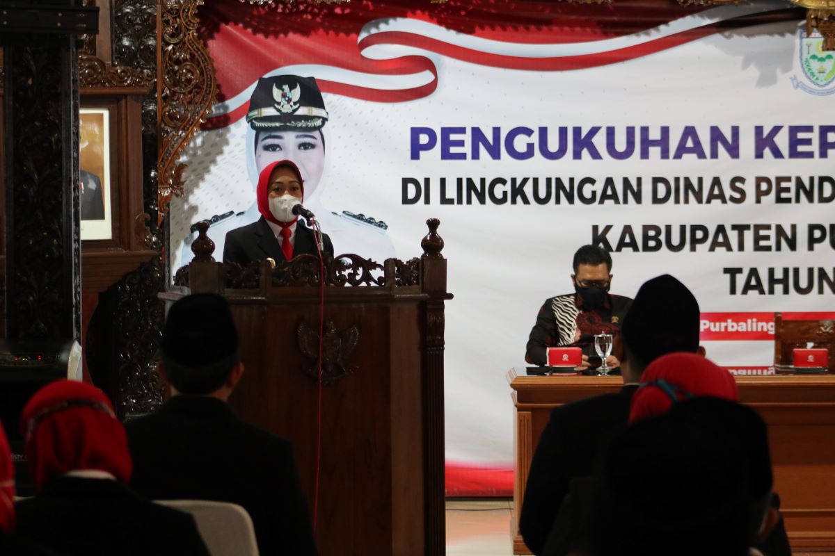 PURBALINGGA – Bupati Purbalingga Dyah Hayuning Pratiwi SE BEcon MM mengukuhkan sebanyak 239 ASN di lingkungan Dinas Pendidikan dan Kebudayaan (Dindikbud) Purbalingga menjadi Kepala SD dan Kepala SMP, Jumat (12/11) di Pendopo Dipokusumo. Dari 239 ASN, sebanyak 193 diantaranya menjadi Kepala SD dan 46 diantaranya menjadi Kepala SMP.