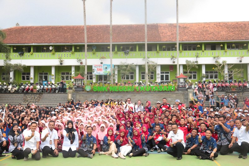 Bertempat di halaman sekolah SMKN 1 Kutasari para siswa terlihat antusias mendengarkan apa yang disampaikan orang nomor satu di Purbalingga itu. Pada Kesempatan itu Bupati Tiwi memotivasi para siswa untuk giat belajar.