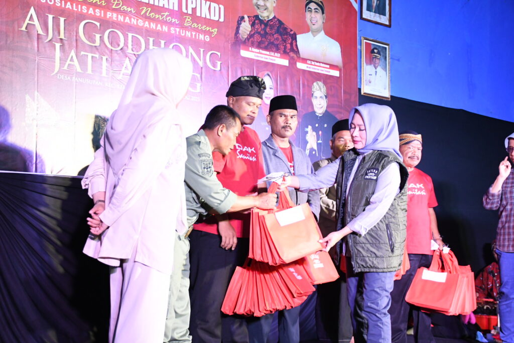 PURBALINGGA – Bupati Purbalingga Dyah Hayuning Pratiwi menyampaikan apresiasinya kepada Dinas Komunikasi dan Informatika (Diskominfo) Provinsi Jawa Tengah yang turut membantu penanganan stunting di Purbalingga khususnya di Desa Panusupan, Kecamatan Rembang. Salah satunya melalui Pelayanan Informasi Kebijakan Daerah (PIKD) berupa pentas seni dan nonton bareng sosialisasi penanganan stunting.
