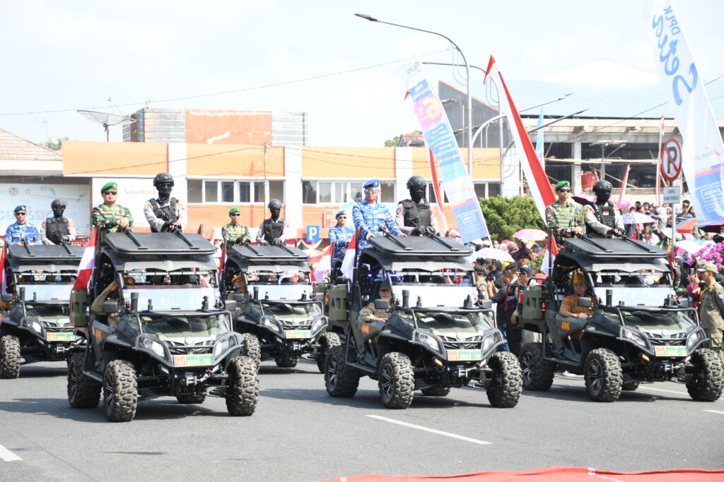 Hadir jajaran Forkompinda dan pada pimpinan OPD dan BUMD. Ribuan masyarakat antusias menyaksikan pawai yang dimulai dari GOR Guntur Darjono dan finish di Alun-alun. (Gn/Prokompim)
