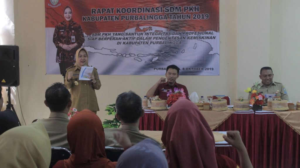 Bupati Purbalingga Dyah Hayuning Pratiwi, SE, BEcon, MM saat bertemu 179 SDM PKH dalam Rakor PKH 2019 berharap agar SDM PKH tidak hanya berperan dalam menyalurkan program pemerintah saja, namun mampu memberikan pendampingan agar keluarga penerima manfaat (KPM) PKH dapat menjadi mandiri dan sejahtera.
