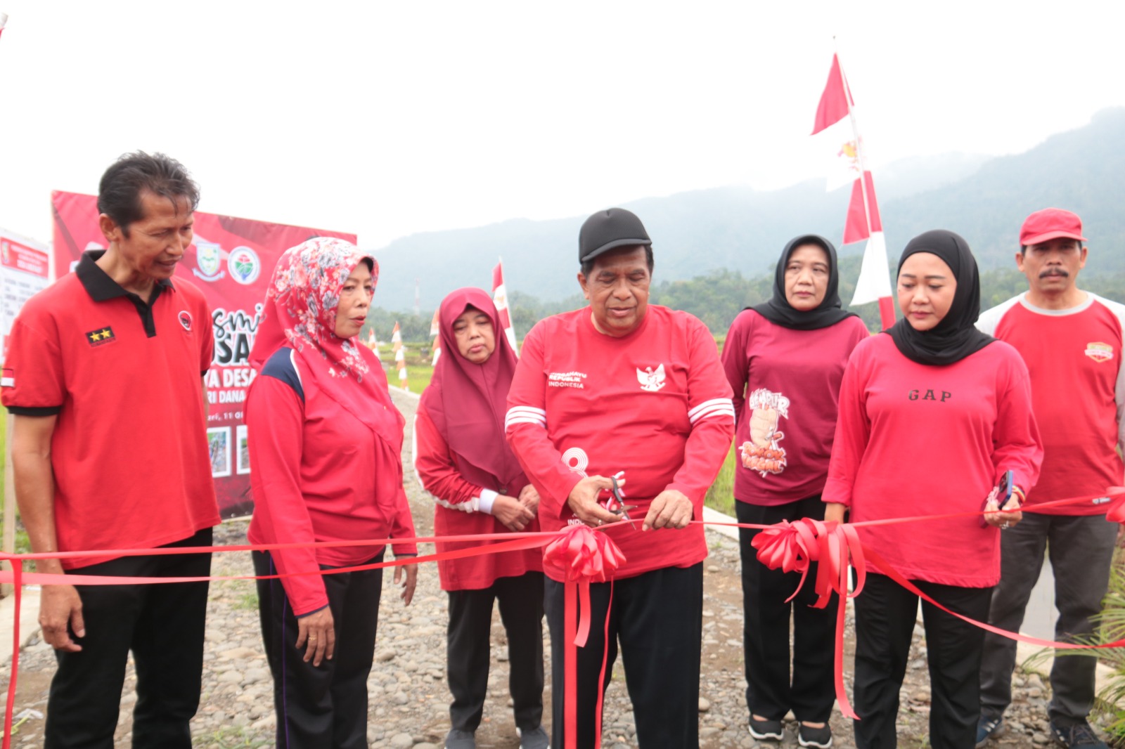 PURBALINGGA INFO – Bupati Purbalingga Dyah Hayuning Pratiwi (Tiwi), melakukan peresmian jalan usaha tani dan peletakan batu pertama pembangunan saluran irigasi di Desa Limbasari, Kecamatan Bobotsari. Kegiatan tersebut merupakan rangkain Gerakan Bersama Masyarakat (Gebrak) Gotong Royong yang dilaksanakan di lapangan Desa Limbasari, Rabu (11/10/23).