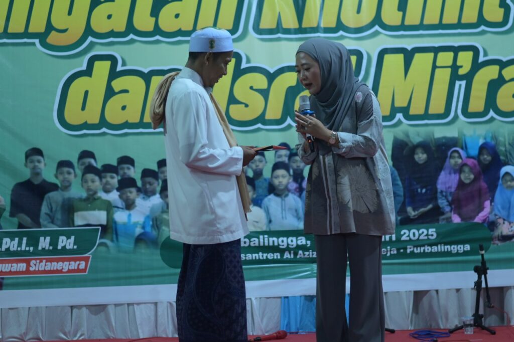 PURBALINGGA – Bupati Purbalingga, Dyah Hayuning Pratiwi (Tiwi), menghadiri acara Peringatan Khotmil Qur’an dan Isra’ Mi’raj di Pondok Pesantren (Ponpes) Roudlatul Muta’allimin Al Aziziyyah DesaToyareja, Kecamatan Purbalingga, Sabtu (11/01/2025). Acara tersebut berlangsung khidmat dan meriah dengan berbagai penampilan santri, termasuk drama yang menggambarkan isu-isu era modern.