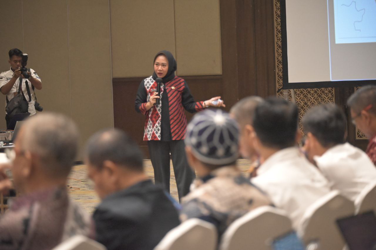 Jakarta – Bupati Purbalingga Dyah Hayuning Pratiwi memaparkan Rencana Detail Tata Ruang (RDTR) Wilayah Perkotaan Bobotsari pada Rapat Koordinasi Lintas Sektor yang diselenggarakan oleh Kementerian Agraria dan Tata Ruang/Badan Pertanahan Nasional (ATR/BPN), di Hotel Sultan Jakarta, Rabu, 24 Mei 2023.