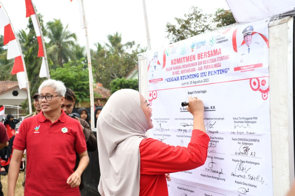 “Kita berharap tahun 2024 angka stunting kita bisa di bawah 10%. Tentunya ini tidak dapat digapai tanpa sengkuyung dari seluruh elemen, termasuk kepala desa dan kader kesehatan, sehingga hari ini kita menandatangani komitmen bersama,” kata Bupati.