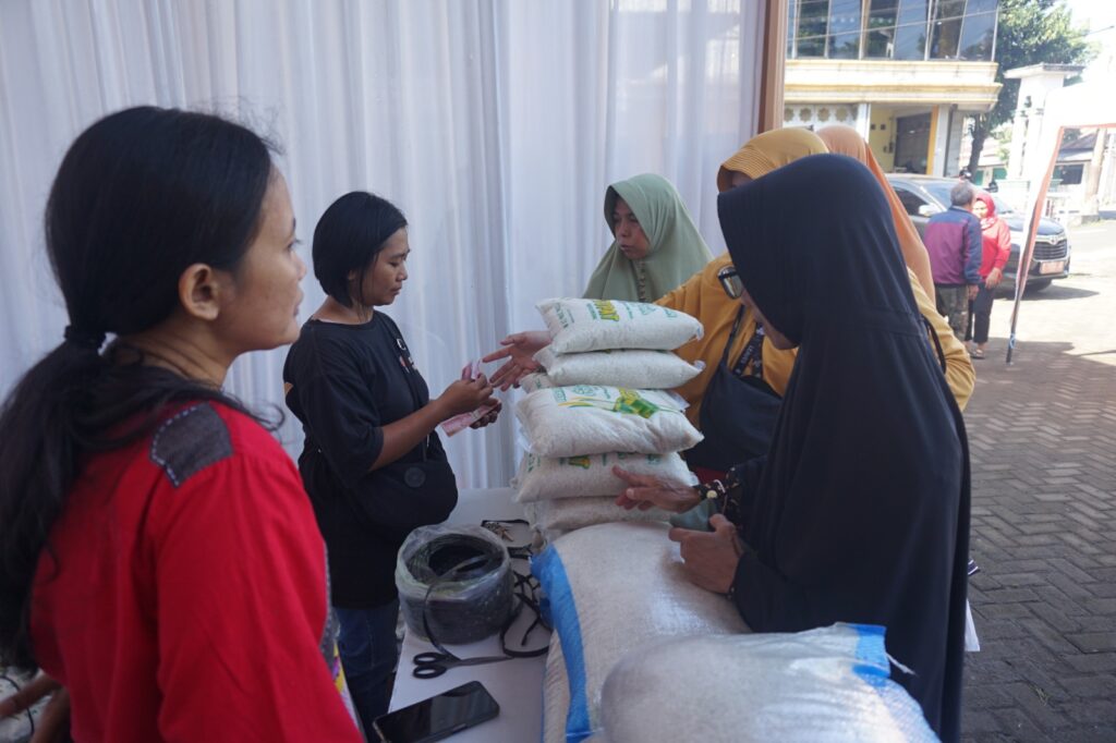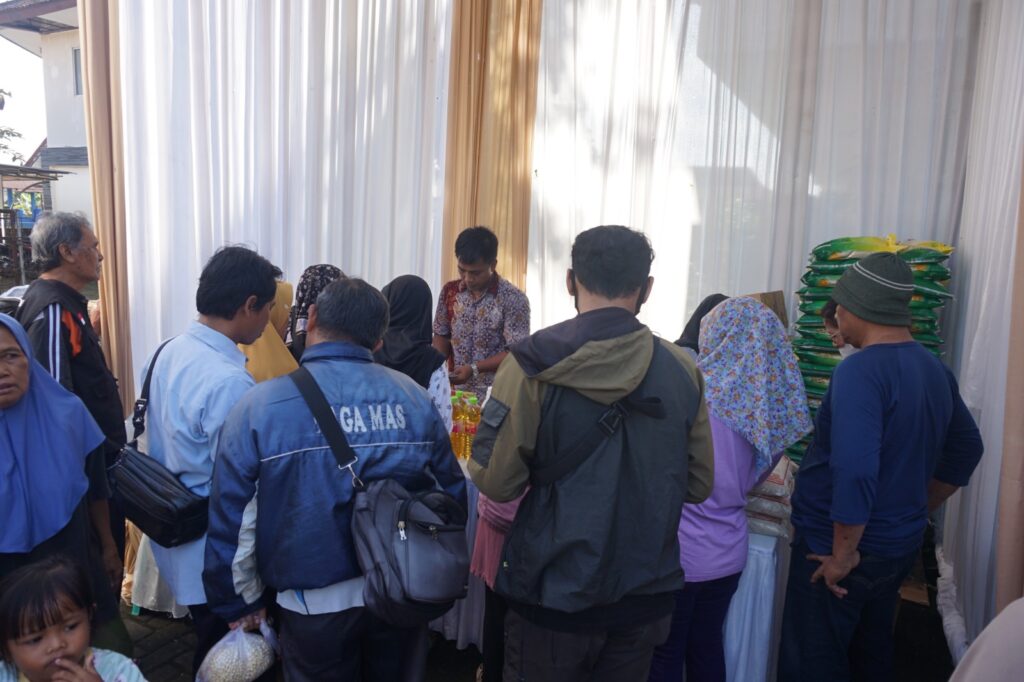Antusiasme warga pun terlihat dalam kegiatan ini. Sumirah, seorang pengunjung dari Desa Galuh, Kecamatan Bojongsari, memborong enam karung beras kemasan 5 kg.