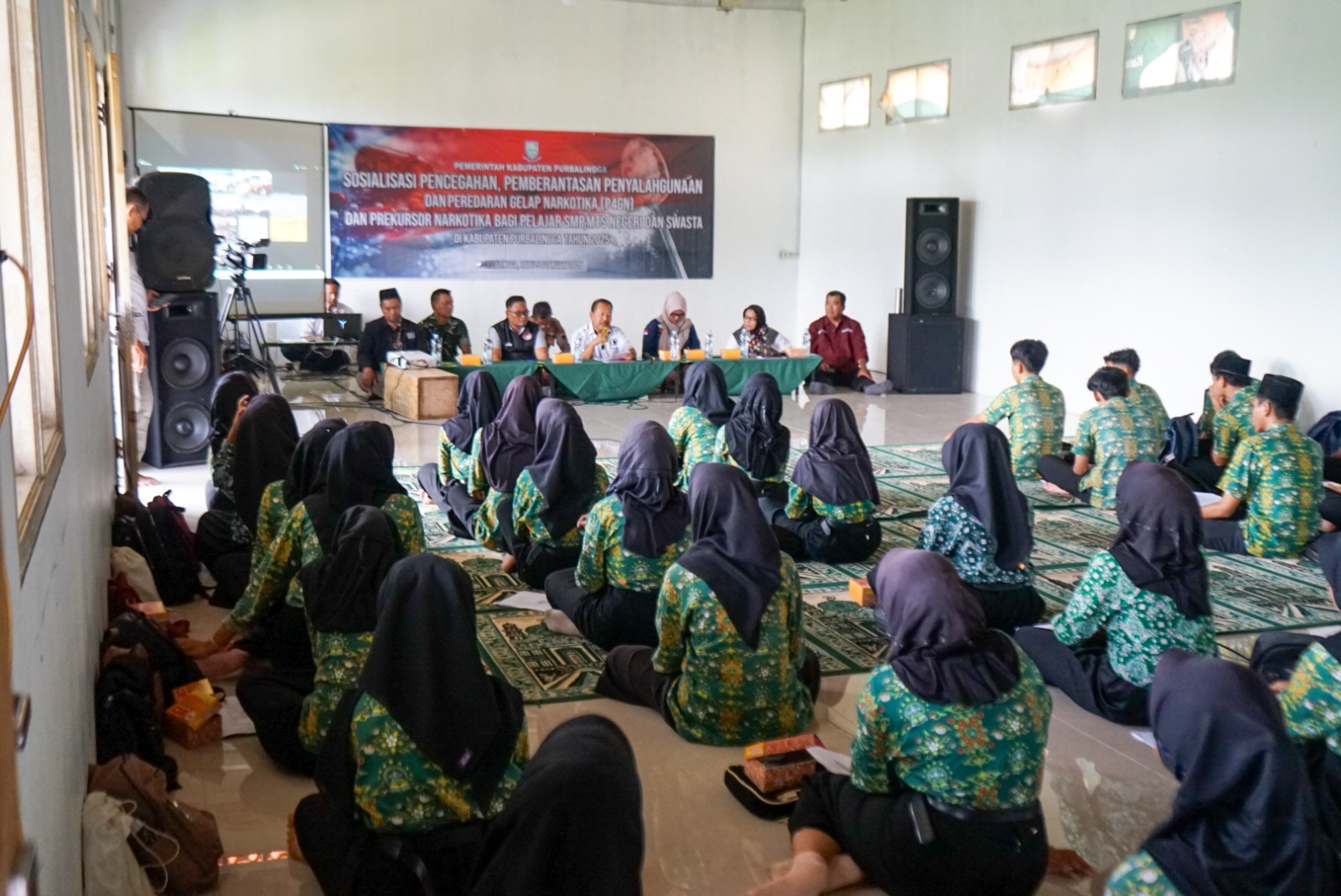 Materi yang disampaikan meliputi peran kepolisian dalam pemberantasan P4GN oleh Polres Purbalingga serta peran BNN dalam pencegahan P4GN oleh BNN Kabupaten Purbalingga.